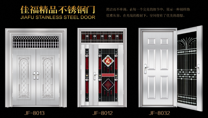 本公司成立于2004年,已有19年的生產(chǎn)進(jìn)戶門的經(jīng)驗積累。公司現(xiàn)擁有鋼質(zhì)非標(biāo)門生產(chǎn)線、標(biāo)門生產(chǎn)線及不銹鋼門三條生產(chǎn)線,我公司專業(yè)設(shè)計、制造、銷售鋼質(zhì)系列進(jìn)戶門、防盜門、不銹鋼門等產(chǎn)品,擁有“宇佳?盈?!焙汀凹延懈!?、“家福.興隆”三個自主品牌和產(chǎn)品系列。公司引進(jìn)了先進(jìn)的生產(chǎn)技術(shù),配置了成龍配套的現(xiàn)代化生產(chǎn)流水線。產(chǎn)品工藝成熟,質(zhì)量上乘。同時,公司廣納賢才,聚集了一批具有開拓創(chuàng)新精神的各類高級管理和技術(shù)人才,建立了一套先進(jìn)的管理模式。